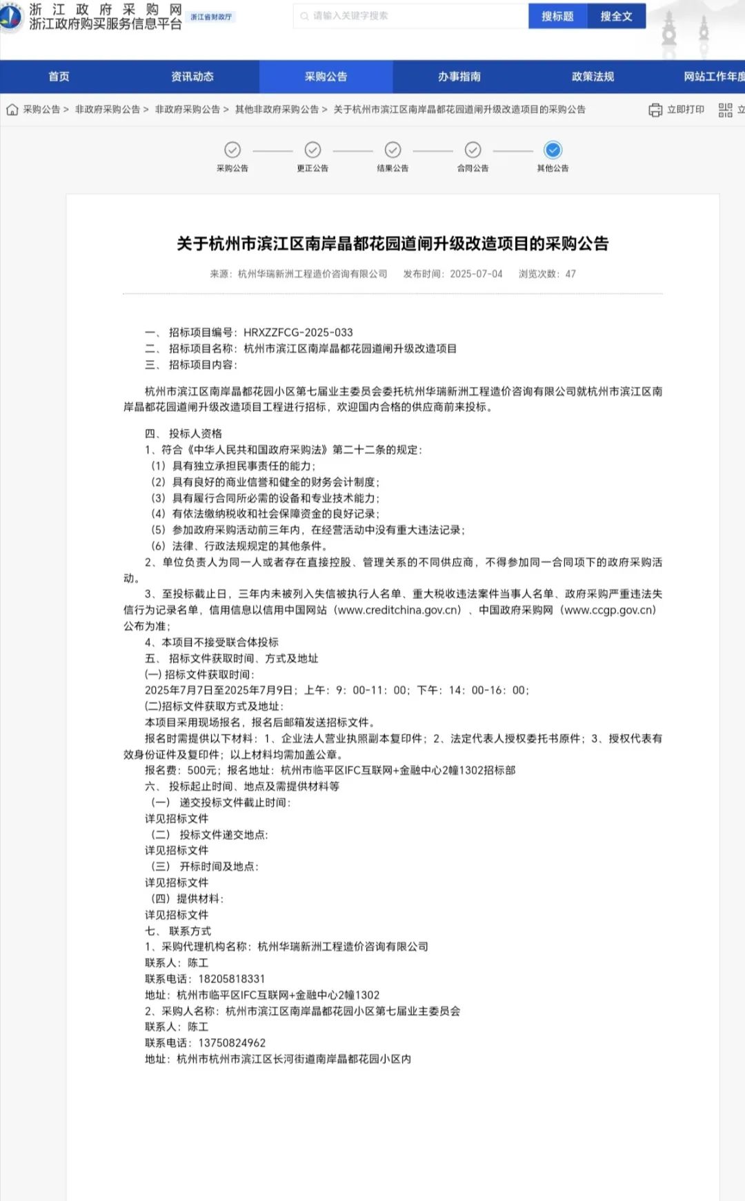 采购单位:杭州市滨江区南岸晶都花园小区第七届业主委员会